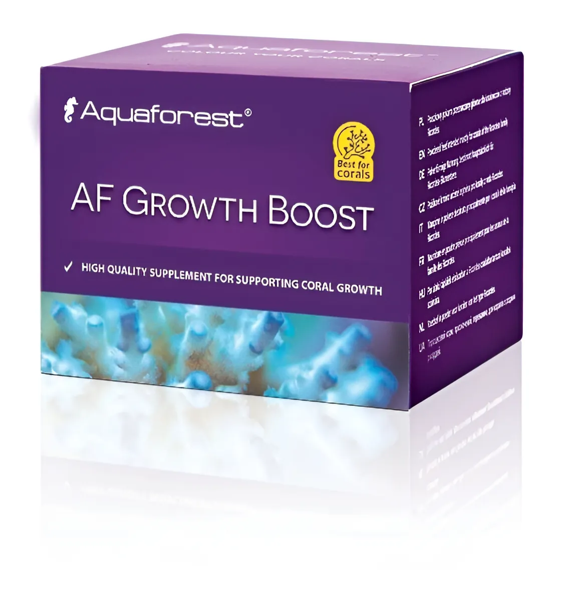 AF Growth Boost é um suplemento que acelera o crescimento dos corais e é adequado para todos os tipos de corais. Com uma composição única de aminoácidos cuidadosamente selecionados, melhora significativamente os pólipos de coral. O uso deste produto permite complementar deficiências e fortalecer o metabolismo dos corais. Enriquecido com carbonato de cálcio, essencial para a construção de esqueletos de coral, a fórmula acelera o processo de calcificação e a riqueza de aminoácidos assegura um crescimento saudável. Graças à sua fórmula equilibrada, o suplemento facilita a adaptação dos corais a novas condições e acelera o seu desenvolvimento.
