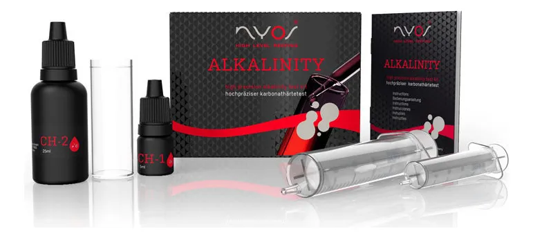 Propriedades da água similares as da natureza são a chave para o sucesso de todo aquário. O acompanhamento constante dos parâmetros relevantes da água do mar é difícil devido aos inúmeros íons que interferem na medição. O TESTE DE ALCALINIDADE NYOS, considera as características específicas da água do mar, pois são necessários para analisar de forma precisa.